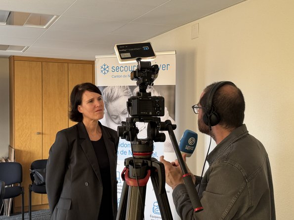 Valérie Grüter, directrice du Secours suisse d’hiver, a ensuite rappelé le contexte du 90ème anniversaire de l’organisation et retracé brièvement son évolution depuis 1936, soulignant la constance de sa mission : soutenir les personnes en situation de précarité en Suisse et à Neuchâtel.